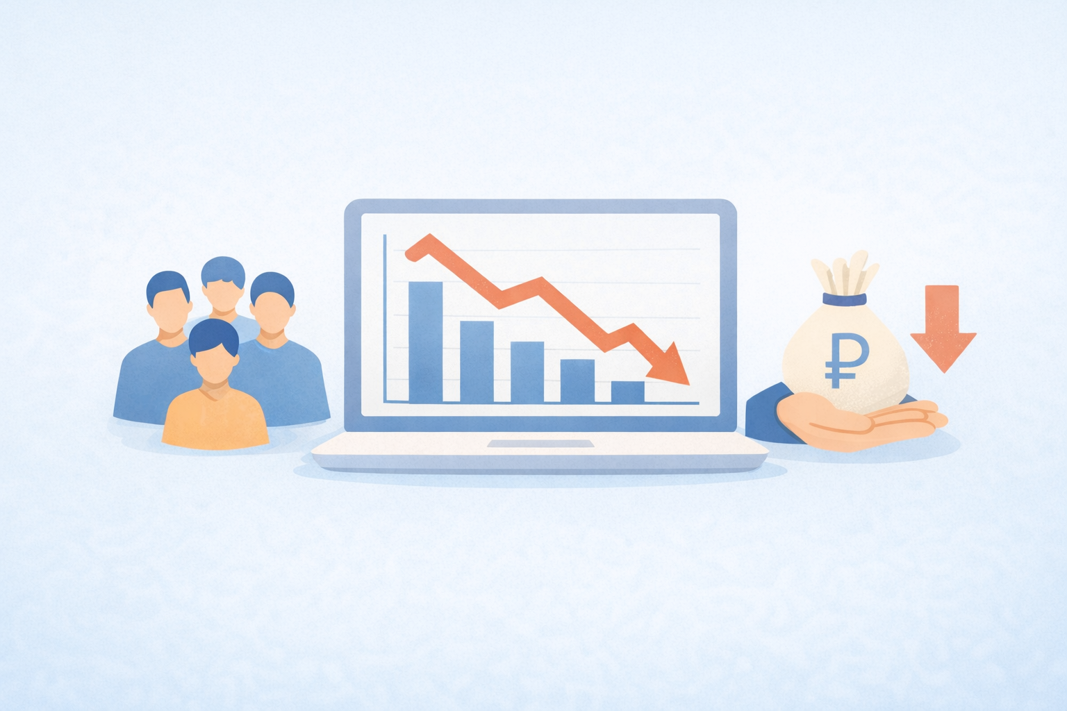 Частая ситуация — рост за счёт небольших клиентов с минимальными тарифами. Количество аккаунтов увеличивается, но средний доход на клиента (ARPU) остаётся низким.